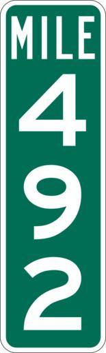 | Keywords: Mile Marker 492.svg  PD MUTCD Rfc1394 457 1676 18 60 triple digit mile marker D10-3 Made using Viridian SVG Batcher this file was fabricated by a program 2009-03-05 Paul Robinson Rfc1394 Own work all rights released Public domain D10-3 - Distance Signs-3 Digit |