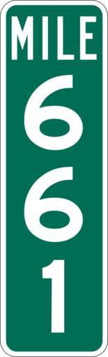 | Keywords: Mile Marker 661.svg PD MUTCD Rfc1394 457 1676 18 60 triple digit mile marker D10-3 Made using Viridian SVG Batcher this file was fabricated by a program 2009-03-05 Paul Robinson Rfc1394 Own work all rights released Public domain D10-3 - Distance Signs-3 Digit 661 number |