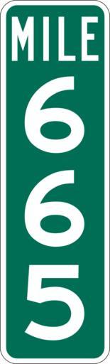 | Keywords: Mile Marker 665.svg PD MUTCD Rfc1394 457 1676 18 60 triple digit mile marker D10-3 Made using Viridian SVG Batcher this file was fabricated by a program 2009-03-05 Paul Robinson Rfc1394 Own work all rights released Public domain D10-3 - Distance Signs-3 Digit |