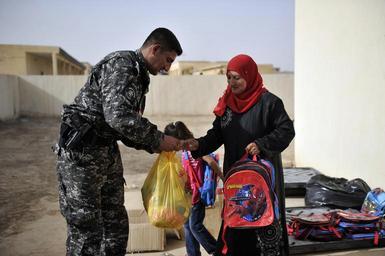 Keywords: Military Civil Medical Operation DVIDS341139.jpg en A member of the Bayji Special Weapons and Tactics unit distributes groceries and a backpack to an Iraqi patient during Military Civil Medical Operation at the Bujwari medical clinic Members of the Bayji SWAT unit provided assistance and security to the people visiting the clinic on Sept 29 The operation was a combined effort between the Iraqi Ministry of Health the Bayji Special Weapons and Tactics unit Bujwari police Sons of Iraq and U S Special Operations Task Force-North Members of the Combined Joint Special Operations Task Force-Arabian Peninsula advise train and assist the Iraqi Security Forces during Operation New Dawn 2010-09-29 Photo by U S Navy Mass Communications Specialist 2nd Class Devin Brown https //www dvidshub net/image/341139 100929-N-+++++-197 2010-11-17 16 10 BAYJI IQ PD-USGov-Military-Navy Sons of Iraq Images from DoD uploaded by Fæ |