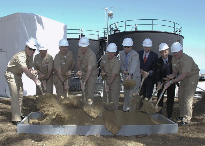 | Keywords: Military Construction Project 401 groundbreaking ceremony DVIDS161777.jpg en Military Construction Project 401 Stakeholders break ground on the five-year 139 million fuel facility replacement at Defense Fuel Support Point Loma at Naval Base Point Loma DFSP Point Loma is the only defense fuel facility in the Southern California region providing fleet assets and airfields annually with fuel valued at 500 million Hering addressed the significance of this new facility to the region and the Navy Military Construction Project 401 will construct six 125 000-barrel fuel storage tanks associated piping facility pump house and a fuel oil reclamation facility at DFSP Point Loma with an option to install two additional tanks 2009-03-27 Chief Petty Officer Yan Kennon https //www dvidshub net/image/161777 090327-N-+++++-023 2009-04-01 02 42 SAN DIEGO CA US PD-USGov-Military-Navy Naval Base Point Loma Images from DoD uploaded by Fæ |