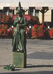 Keywords: mim figure character a person disguise dress woman feminine dress style game fun historical figure lady girl wrocław market wrocław afternoon warm light dark green outfit fixed character