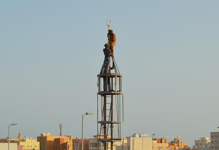 Keywords: minaret building builders workers construction mosque islam muslim islamic saudi arabia