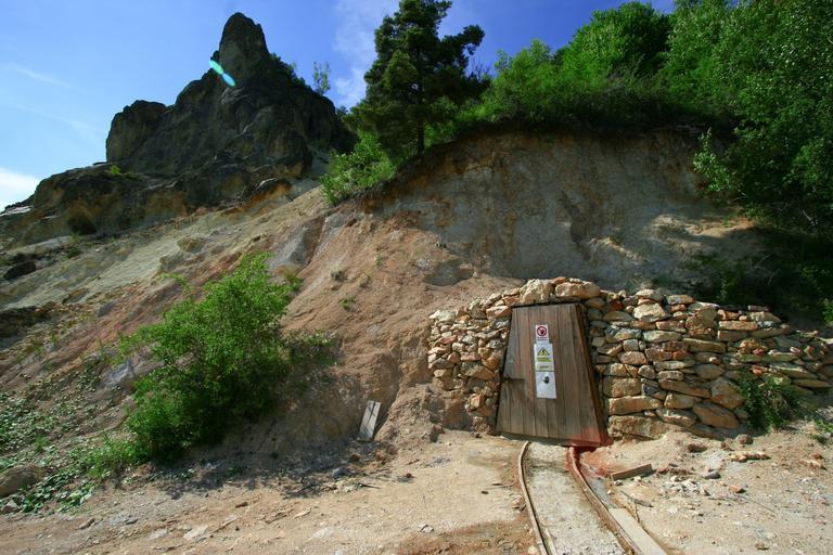Keywords: mine entrance door underground rail railroad railway old tunnel rock mining abandoned