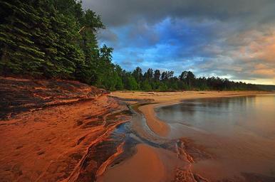 Keywords: Red-Rock Miners Beach Rocks National Lakeshore sunset thunderstorm Michigan