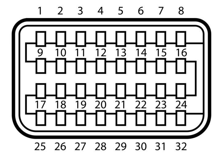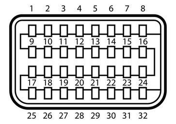 Keywords: MiniDVI Connector Pinout.svg The Pinout of a mini-DVI connector as viewed from the socket 2006-06-12 own assumed Mobius DVI pinouts
