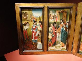 | Keywords: Miracles of Santiago - Indianapolis Museum of Art - DSC00723.JPG The Miracles of Santiago Painting about 1500 Photographed 2011 04 oil on panel 32 x 70 in closed 32 x 138 in open Institution Indianapolis Museum of Art Northern Renaissance gallery credit line James E Roberts Fund Accession number 24 3 User Daderot took the photo 2011-04-01 16 27 44 Miracles of Santiago | ||||