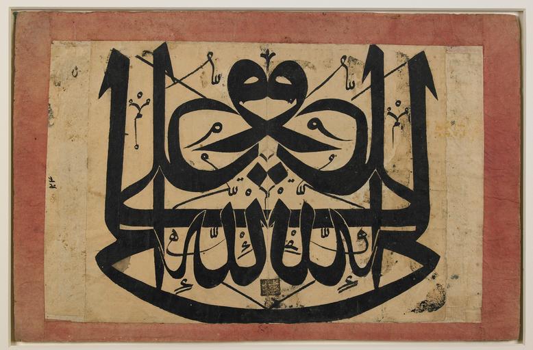 Keywords: Mirror Image of 'Ali wali Allah WDL6788.png Artwork ru ахмуд Иб агим fr Maḥmūd Ibrāhīm en Maḥmūd Ibrāhīm zh 穆罕默德 易 拉欣 pt Maḥmūd Ibrāhīm ar محمود إبراهيم es Maḥmūd Ibrāhīm ru Зе кальное изоб ажение ф азы 'Ali wali Allah fr Image en miroir de 'Ali wali Allah en Mirror Image of 'Ali wali Allah zh 阿里是 主之友 的 像 pt Imagem Espelhada de 'Ali wali Allah ar صورة معكوسة لسيدنا علي رضي الله عنه ru а этой ту ецкой <em>левхе</em> каллиг афическом панно 18-го века п едставлена ф аза шиитов Али наместник Бога написанная в п ямом и об атном нап авлении что создает ее точное зе кальное отоб ажение Для создания точной каллиг афической копии каллиг аф использовал ве тикально сложенную по се едине плотную бумагу к емового цвета а затем наклеил ее на ка тон и обклеил поля озовой п ямоугольной амкой Зе кальное письмо было асп ост анено в пе иод аннего нового в емени но его п оисхождение может уходить ко нями еще в доисламские зе кальные наскальные исунки в Хиджазе в западной полосе А авийского полуост ова В ско ом в емени была освоена г ави овка в об атном нап авлении для изготовления монет и печатей Зе кальное письмо и создание зе кальных изоб ажений было асп ост анено в Османской импе ии в 18-ом и 19-ом веках в частности в оккультных к угах связанных с о деном бекташи П едставители о дена бекташи создавали каллиг афические панно и ка тины от ажающие их убеждения с еди кото ых ве а в божественную п и оду Али четве того халифа ислама и зятя п о ока ухаммеда адпись на панно гово ит о том что Али неотделим от Бога Это панно могло висеть на стене в жилом помещении де вишей в мечети или в обители де виша Данный об азец соде жит собственно учную печать художника квад атный отпечаток пе ек ывающий цент альный ве тикальный сгиб а печати указано имя ахмуд Иб агим кото ый является авто ом д угих панно дати уемых 1134 г хидж ы 1721-1722 гг  н э и 1141 г хидж ы 1728 г  н э Исходя из этого можно п едположить что это панно аботы того же художника ве оятно относится п име но к 1720 1730 гг  н э <br>А абская каллиг афия; Иллюмини ование укописей; Исламская каллиг афия; Исламские укописи; Зе кальные изоб ажения fr Ce <em>levha</em> panneau calligraphique ottoman du XVIIIe siècle montre la phrase shi'a « Ali est le représentant de Dieu » à l'endroit et à l'envers créant ainsi une parfaite image en miroir Le calligraphe a utilisé le pli central vertical de l'épais papier couleur crème pour dessiner la reproduction calligraphique exacte avant de la fixer sur un carton et de coller des cadres rectangulaires roses le long de ses bordures L'écriture en miroir s'est beaucoup développée au début de l'époque moderne mais ses origines remonteraient aux inscriptions en miroir pré-islamiques retrouvées sur la roche dans le Hedjaz la bande occidentale de la péninsule arabe Graver à l'envers pour fabriquer des pièces de monnaie et des sceaux est un art maîtrisé depuis longtemps L'écriture en miroir et la fabrication d'images en miroir étaient très développées sous l'empire ottoman au cours des XVIIIe et XIXe siècles en particulier dans les résidences mystiques associées à l'ordre bektashi Les bektashis ont créé des panneaux calligraphiques et des peintures réfléchissantes de leurs dogmes qui comprenaient la croyance en la divinité de 'Ali quatrième calife de l'islam et gendre du prophète Mahomet Comme le suggère ce panneau Dieu et 'Ali sont indissociables Le panneau était probablement accroché à un mur dans une résidence de derviches bektashis dans une mosquée ou dans une loge de derviche Cet exemplaire comporte le sceau olographe de l'artiste une impression carrée chevauchant le pli central vertical portant le nom de Mahmud Ibrahim dont l'œuvre apparaît sur un autre levha où figurent les dates 1134 A H 1721 1722 apr J -C et 1141 A H 1728 ce qui suggère que ce panneau du même auteur date probablement des années 1720 1730 <br>Calligraphie arabe; Enluminures; Calligraphie islamique; Manuscrits islamiques; Images en miroir en This 18th-century Ottoman<em> levha</em> calligraphic panel depicts the Shi'a phrase 'Ali is the vicegerent of God in obverse and reverse creating an exact mirror image The calligrapher used the central vertical fold in the thick cream-colored paper to trace the exact calligraphic duplication prior to mounting it on cardboard and pasting rectangular pink frames along its borders Mirror writing flourished during the early modern period but its origins may stretch as far back as pre-Islamic mirror-image rock inscriptio