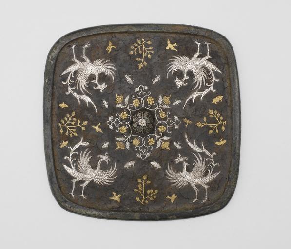| Keywords: Mirror with phoenixes, birds, and flowers - Google Art Project.jpg cm 15 90 15 90 Institution Freer Gallery of Art East Grand Staircase Corridor object history credit line accession number dAHD_O150bJeSA PD-old-100 verify this Google Art Project works in Freer Gallery of Art Smithsonian Gold inlays Silver inlays Google Art Project works by unknown artist Mirrors Chinese art in the Freer Gallery | ||||