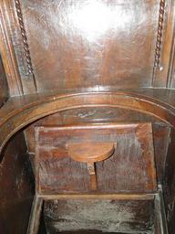Keywords: Misericordiastall.JPG en Simple Misericord Chorstall in northern Italy own K Weise 2010-08-23 Misericords