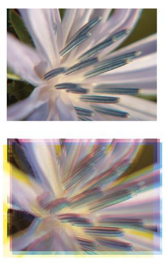 Keywords: Misregistration.png Misregistration using CMYK The picture uppermost shows how the printed image should look if the CMYK were rigistred correctly while the picture below shows how it looks when there is a misregistration 2006-09-23 own assumed Nilsjohan~commonswiki Printing Color separations |