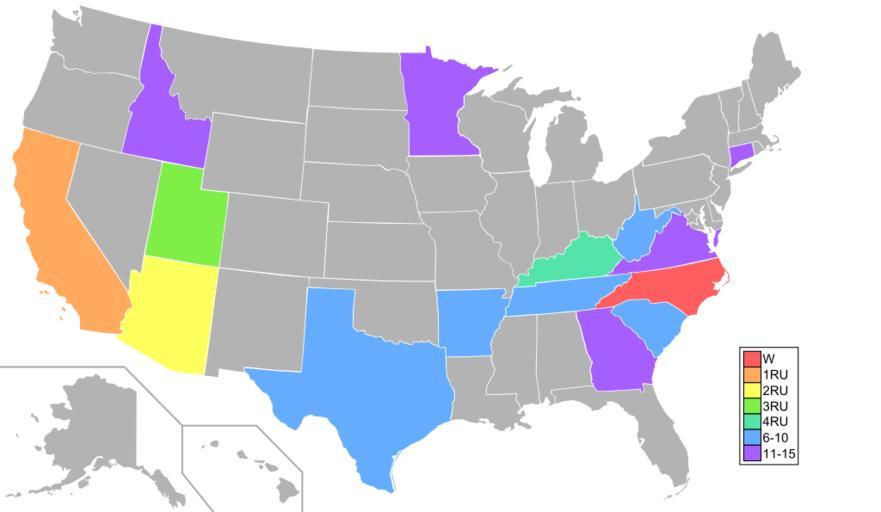 Keywords: Miss USA 2009 results map.svg Map showing placements at the Miss USA 2009 pageant Key on graphic shows colour coding for break down of placements Self-made based on Image BlankMap-USA-states PNG 2009-04-19 Gage Skidmore <span class signature-talk >talk</span> Miss USA maps |