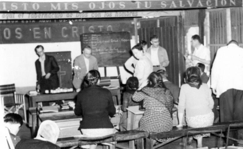 | Keywords: argentina missions council missionscouncil blackandwhite monochrome black and white Caption: Sharing tea at the missions conference Citation: Mennonite Board of Missions. Photographs. Argentina, 1937-1954. IV-10-7.2 Box 1 folder 45, photo #12. Mennonite Church USA Archives - Goshen. Goshen, Indiana. Caption: Sharing tea at the missions conference Citation: Mennonite Board of Missions. Photographs. Argentina, 1937-1954. IV-10-7.2 Box 1 folder 45, photo #12. Mennonite Church USA Archives - Goshen. Goshen, Indiana. |
