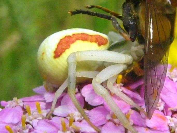 | Keywords: Misumena-vatia-female-17-VII-2007-14.jpg de Weibchen der Krabbenspinne Misumena vatia mit Beute Schwebfliege fotografiert im Nauener Stadtwald Brandenburg own - 2007 07 17 2007-07-27 Botaurus Botaurus Misumena vatia eating insects on flowers Diptera on flowers Unidentified Syrphidae |
