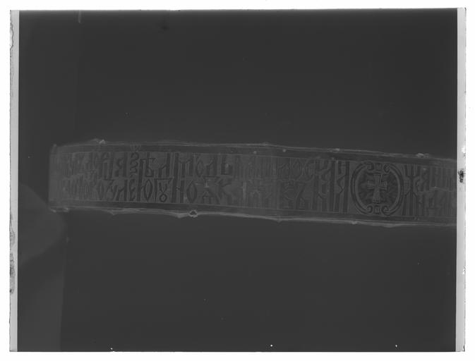 Keywords: Mitra för dignitär inom den ryska ortodoxa kyrkan - Livrustkammaren - 79407-negative.tif LSH artwork sv Krigsbyge från Narva Mitra av hattformig modell med cylindrisk kulle med svagt rundad kant Vulstformigt brätte b ca 30 mm klätt med pergament ursprungligen med skinn Kullen klädd med delvis mycket slitet karminrött siden nertill vid brättet ring av förgylld silverplåt b 30 mm med graverad gammalslavisk text översättning se Bodin År 7 159 november 17 dagen gav statssekreteraren Michail Danilovs hustru änkan Uljana dotter till Vasilij denna biskopsmössa till Tjudovklostret till den undergörande Aleksijs hem till minne av sin make Michail Danilovitj eremitmunken Misail och sin dotter Ksenia för sin själDärovanför en krans med sex ursprungligen nio helgonbilder graverade på rektangulära plåtar med trepassformig överdel mellersta bågen spetsig h 83 mm b 58 mm gammalslaviska texter 1 - ett manligt helgon med otydlig text pete ; 2 - ärkeängeln Gabriel achange gabri ; 3 - Maria mrthy mätär Theo - Guds moder ; 4 - ärkeängeln Mikael achage michail ; 5 - evengelisten Petrus apoto petr ; 6 - helgon i biskopsdräkt st alekse miro På kullens översida en krans med nio runda plåtar med serafer och keruber fyra stycken med text serafim fem med cherubi Mitt på kullen en stor rund plåt d 102 5 mm med Maria och Jesusbarnet text mrthy Guds Moder Runt plåtarna broderier med silke silvertråd och -paljetter två ovala genomborrade glaspärlor bevarade Hatten invändigt stoppad och klädd med blekrött siden original caption Slaget vid Narva 1650 silver - silk Färg röd karminröd material siden - parchment size mm 195 kulle size mm 265 bräm g 6145 size mm 150 ca LRK Karl XII av Sverige Mille ans de tradition chret 1988-1989 Kungens lockpipa 1995-1996 Karl XII och Peter den store Peter den store och Karl XII - i krig och fred 1998-1999 Livrustkammaren Krigsbyte 2007-2008 300-årsminnet av slaget vid Poltava / Poltava 300 Years Eremitaget och Kreml-museet 2009-2010 Livrustkammaren nya basutställning 2018 LRK bas 2018 Livrustkammaren apoto Petr S t Petrus Per achage michail Mikael st alekse miro S t Alexej Miro mrthy Mätär Theou - Guds Moder Maria achange gabri Gabriel place of origin original filename LN_E02385 42045 inventory number LRK 5388 79407 CC0 Mitra för dignitär inom den ryska ortodoxa kyrkan - Livrustkammaren - 79407 tif <gallery caption Different images of same object > File Mitra Tchudov-klostret - Livrustkammaren - 38923 tif File Mitra för dignitär inom den ryska ortodoxa kyrkan - Livrustkammaren - 10922 tif File Mitra för dignitär inom den ryska ortodoxa kyrkan - Livrustkammaren - 2362 tif File Rysk-ortodox mitra från 1650 - Livrustkammaren - 47481 tif File Mitra för dignitär inom den ryska ortodoxa kyrkan - Livrustkammaren - 53725 tif File Mitra ovanifrån - Livrustkammaren - 18355 tif File Mitra för dignitär inom den ryska ortodoxa kyrkan - Livrustkammaren - 62286 tif File Mitra för dignitär inom den ryska ortodoxa kyrkan - Livrustkammaren - 70848 tif File Helbild mitra - Livrustkammaren - 9793 tif </gallery> <gallery caption Related objects > File Mässkåpa - Livrustkammaren - 68556 tif LRK 19520 File Rysk mässkåpa - Livrustkammaren - 5042 tif LRK 19520 File Mässkåpa rysk detalj - Livrustkammaren - 25085 tif LRK 19520 File Mässkåpa rysk detalj - Livrustkammaren - 16523 tif LRK 19520 File Rysk mässkåpa - Livrustkammaren - 35643 tif LRK 19520 File Rysk mässkåpa - Livrustkammaren - 231 tif LRK 19520 File Rysk patriarksköld - Livrustkammaren - 26429 tif LRK 19521 File Rysk mässkåpa - Livrustkammaren - 77275 tif LRK 19520 </gallery> |