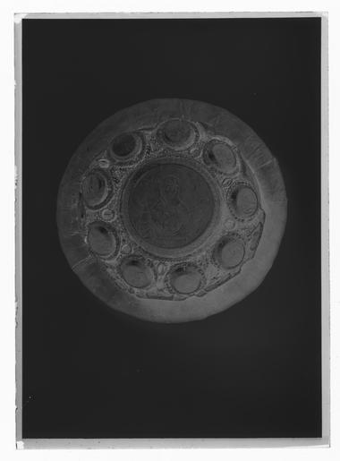 Keywords: Mitra, ovanifrån - Livrustkammaren - 18355-negative.tif Mitra av hattformig modell med cylindrisk kulle med svagt rundad kant Vulstformigt brätte b ca 30 mm klätt med pergament ursprungligen med skinn Kullen klädd med delvis mycket slitet karminrött siden nertill vid brättet ring av förgylld silverplåt b 30 mm med graverad gammalslavisk text översättning se Bodin <br/>År 7 159 november 17 dagen gav statssekreteraren Michail Danilovs hustru änkan Uljana dotter till Vasilij denna biskopsmössa till Tjudovklostret till den undergörande Aleksijs hem till minne av sin make Michail Danilovitj eremitmunken Misail och sin dotter Ksenia för sin själ<br/><br/>Därovanför en krans med sex ursprungligen nio helgonbilder graverade på rektangulära plåtar med trepassformig överdel mellersta bågen spetsig h 83 mm b 58 mm gammalslaviska texter <br/>1 - ett manligt helgon med otydlig text pete ; 2 - ärkeängeln Gabriel achange gabri ; 3 - Maria mrthy mätär Theo - Guds moder ; 4 - ärkeängeln Mikael achage michail ; 5 - evengelisten Petrus apoto petr ; 6 - helgon i biskopsdräkt st alekse miro <br/><br/>På kullens översida en krans med nio runda plåtar med serafer och keruber fyra stycken med text serafim fem med cherubi <br/><br/>Mitt på kullen en stor rund plåt d 102 5 mm med Maria och Jesusbarnet text mrthy Guds Moder <br/><br/>Runt plåtarna broderier med silke silvertråd och -paljetter två ovala genomborrade glaspärlor bevarade <br/><br/>Hatten invändigt stoppad och klädd med blekrött siden original caption mitra - LRK 5388 ovanifrån Slaget vid Narva 1650 silver thread - silver - silk Färg röd karminröd material siden - parchment size mm 265 bräm g 6145 size mm 150 ca size mm 195 kulle LRK Karl XII av Sverige Mille ans de tradition chret 1988-1989 Kungens lockpipa 1995-1996 Karl XII och Peter den store 1998-1999 Krigsbyte 2007-2008 300-årsminnet av slaget vid Poltava / Poltava 300 Years Eremitaget och Kreml-museet 2009-2010 achange gabri Gabriel achage michail Mikael mrthy Mätär Theou - Guds Moder Maria apoto Petr S t Petrus Per st alekse miro S t Alexej Miro achange gabri Gabriel achage michail Mikael mrthy Mätär Theou - Guds Moder Maria apoto Petr S t Petrus Per st alekse miro S t Alexej Miro place of origin original filename LN_B09462_012342 42045 inventory number LRK 5388 18355 CC0 Mitra ovanifrån - Livrustkammaren - 18355 tif <gallery caption Different images of same object > File Helbild mitra - Livrustkammaren - 9793 tif </gallery> |