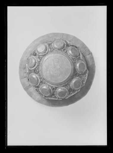 Keywords: Mitra, ovanifrån - Livrustkammaren - 18355.tif Mitra av hattformig modell med cylindrisk kulle med svagt rundad kant Vulstformigt brätte b ca 30 mm klätt med pergament ursprungligen med skinn Kullen klädd med delvis mycket slitet karminrött siden nertill vid brättet ring av förgylld silverplåt b 30 mm med graverad gammalslavisk text översättning se Bodin <br/>År 7 159 november 17 dagen gav statssekreteraren Michail Danilovs hustru änkan Uljana dotter till Vasilij denna biskopsmössa till Tjudovklostret till den undergörande Aleksijs hem till minne av sin make Michail Danilovitj eremitmunken Misail och sin dotter Ksenia för sin själ<br/><br/>Därovanför en krans med sex ursprungligen nio helgonbilder graverade på rektangulära plåtar med trepassformig överdel mellersta bågen spetsig h 83 mm b 58 mm gammalslaviska texter <br/>1 - ett manligt helgon med otydlig text pete ; 2 - ärkeängeln Gabriel achange gabri ; 3 - Maria mrthy mätär Theo - Guds moder ; 4 - ärkeängeln Mikael achage michail ; 5 - evengelisten Petrus apoto petr ; 6 - helgon i biskopsdräkt st alekse miro <br/><br/>På kullens översida en krans med nio runda plåtar med serafer och keruber fyra stycken med text serafim fem med cherubi <br/><br/>Mitt på kullen en stor rund plåt d 102 5 mm med Maria och Jesusbarnet text mrthy Guds Moder <br/><br/>Runt plåtarna broderier med silke silvertråd och -paljetter två ovala genomborrade glaspärlor bevarade <br/><br/>Hatten invändigt stoppad och klädd med blekrött siden original caption mitra - LRK 5388 ovanifrån Slaget vid Narva 1650 silver thread - silver - silk Färg röd karminröd material siden - parchment size mm 265 bräm g 6145 size mm 150 ca size mm 195 kulle LRK Karl XII av Sverige Mille ans de tradition chret 1988-1989 Kungens lockpipa 1995-1996 Karl XII och Peter den store 1998-1999 Krigsbyte 2007-2008 300-årsminnet av slaget vid Poltava / Poltava 300 Years Eremitaget och Kreml-museet 2009-2010 achange gabri Gabriel achage michail Mikael mrthy Mätär Theou - Guds Moder Maria apoto Petr S t Petrus Per st alekse miro S t Alexej Miro achange gabri Gabriel achage michail Mikael mrthy Mätär Theou - Guds Moder Maria apoto Petr S t Petrus Per st alekse miro S t Alexej Miro place of origin original filename LN_B09462_012342 42045 inventory number LRK 5388 18355 CC0 Mitra ovanifrån - Livrustkammaren - 18355-negative tif <gallery caption Different images of same object > File Helbild mitra - Livrustkammaren - 9793 tif </gallery> Battle of Narva 1700 Headgear Media contributed by LSH dim-with multiple size templates Media contributed by LSH 2013-10 |