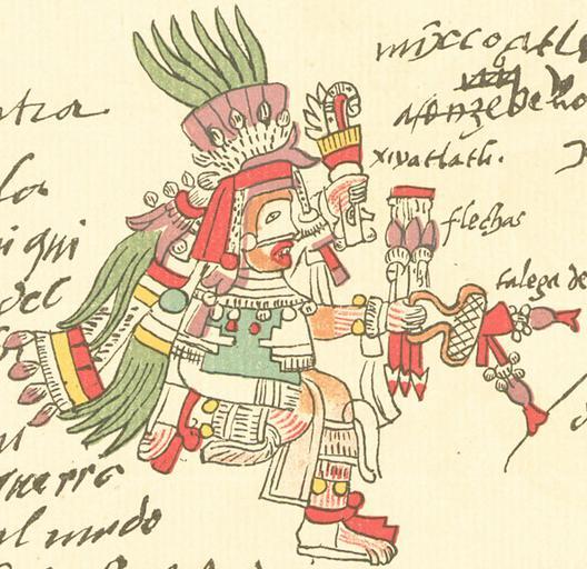 Keywords: Mixcoatl telleriano-remensis.jpg The Aztec god Mixcoatl Codex Telleriano-Remensis century 16 Anonymous PD-old Mixcoatl Codex Telleriano-Remensis
