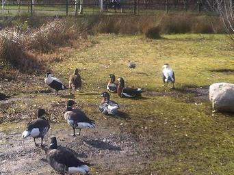 Keywords: Mixt flock 3.jpg en Mixt flock of Anatidae in WWT London Wetland Centre England The flock contains the following bird species Brant Goose Branta bernicla Red-breasted Goose Branta ruficollis and Common Eider Somateria mollissima hu Vegyes lúdcsapat a londoni WWT London Wetland Centre-ben A csapat a következő récefélékből tevődik össze Örvös lúd Branta bernicla Vörösnyakú lúd Branta ruficollis és Pehelyréce Somateria mollissima WWT London Wetland Centre Dénes Emőke 2011 február 24 Cc-zero Branta bernicla captive Branta ruficollis in zoos Somateria mollissima captive Birds in WWT London Wetland Centre |