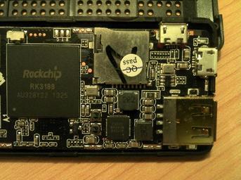 Keywords: MK809III V1.0 130606 inside VREG uSD USB.jpg en Originally produced as an Android Mini-PC TV-Stick there is a range of Operating Systems to run on RK3188 ARM SoC devices such as this one Despite the Android logo on the outside it also runs other Linux distributions The specific model name found on the board inside is MK809III V1 0 This device was built in the 25th week of 2013 and the PCB revision dates 2013-06-06 Its characteristics are Rockchip RK3188 ARMv7 SoC GEIL 2GB DDR3 RAM memory SK hynix 8GB NAND memory Active ACT8846 Voltage Regulator Broadcom AP6210 WIFI/BT Combo ITE IT66121 HDMI chip Blue LED power on customizable 1 recovery button paper clip hole on the side 1 µSDHC card reader 1 USB2 0 OTG micro size connector for peripheral or nand flash see below 1 USB2 0 micro size connector for 5V 2A power connect in normal usage 1 USB2 0 HOST full size connector for peripheral to flash the device unplug every port of the device use a paper clip to push the recovery button and hold connect OTG port ONLY to a PC wait a couple of seconds release recovery button flash using your favorite software The device is very similar to Rikomagic MK802 IV or Radxa Rock devices up to the extent that firmwares are interchangable They are all built around the same RK3188 ARMv7 SoC The Kernel can be customized by the end user as leaked Rockchip Kernel sources versioned 3 0 36 may be found on Github Some work is in progress to integrate support into mainline kernel tree For more info see http //linux-rockchip info/mw/index php title RK3188 2014-04-15 04 52 21 own Cmuelle8 cc-zero Uploaded with UploadWizard MK809III |