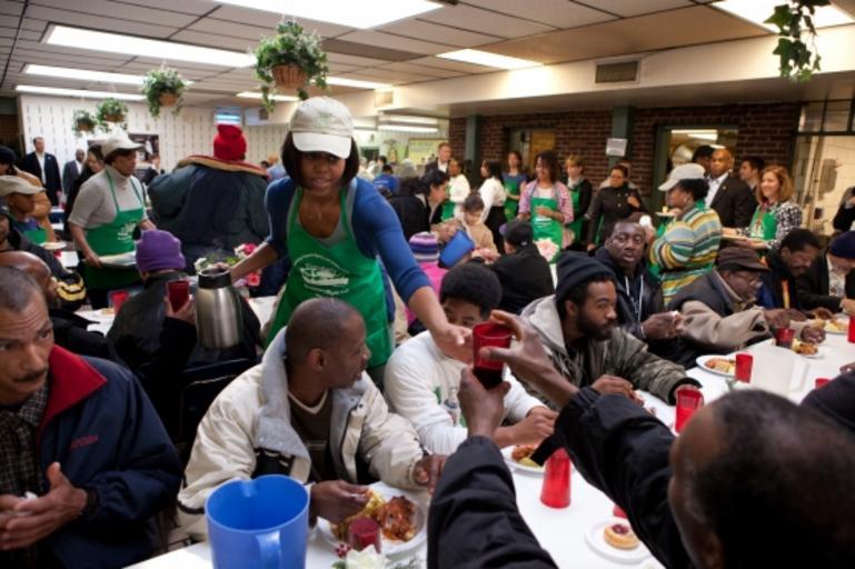 | Keywords: MLK service firstlady.JPG en In honor of Martin Luther King Day First Lady Michelle Obama serves lunch in the dining room at So Others Might Eat a soup kitchen in Washington January 18 2010 http //www whitehouse gov/blog/2010/01/18/service-and-dr-king Chuck Kennedy 2010-01-18 PD-USGov Michelle Obama in 2010 20100118 Soup kitchens Martin Luther King Jr Day 2010 2010 in Washington D C Groups of African Americans | ||||