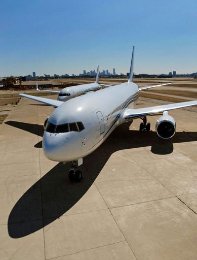Keywords: MLW Air LLC (front).jpg en A Boeing 757 and Boeing 767 used for VIP charter flights by the MLW Air LLC airline which is headquartered in Dallas Texas own M12Prod N767MW aircraft Cc-zero