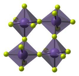 Keywords: Mn4F20-ring-from-alpha-MnF4-xtal-1987-CM-3D-polyhedra.png Polyhedral model of an Mn<sub>4</sub>F<sub>20</sub> ring in the crystal structure of -manganese IV fluoride MnF<sub>4</sub> Colour code 9c7bc6 Manganese Mn light purple d4f03f Fluorine F yellow-green Structure determined by X-ray crystallography reported in Z Naturforsch B 1987 42 1102 “1106 ICSD 62069 Model manipulated and image generated in http //www crystalmaker com/ CrystalMaker 8 6 Own 2012-07-22 Ben Mills Benjah-bmm27 Images by Ben Mills Manganese IV fluoride |