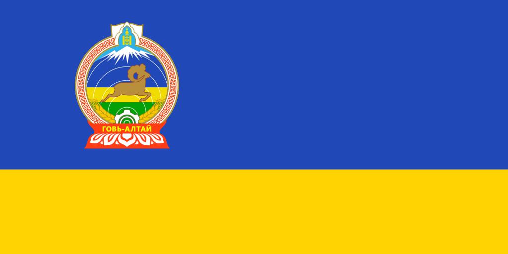 | Keywords: Mn flag govi-altai aimag 2011.svg en Flag of Govi-Altai Aimag Mongolia since 2011 Official blason http //www govi-altai gov mn/blog/list/17 Bottom third yellow for the Gobi Blue on top for the eternal skies COA in the blue near the hoist size ratio of 1x2 2016-06-11 own ; faithful reproduction of blason; Dark blue same as mountains on COA chosen based on the real life flag hanging in the governers office http //etowshoo blog gogo mn/ date 2012-05 User Latebird other versions left thumb 128px PNG version of flag Custom license marker 2016 06 11 PD-Mongolia-exempt SVG flags of provinces of Mongolia Govi-Altai Aimag |