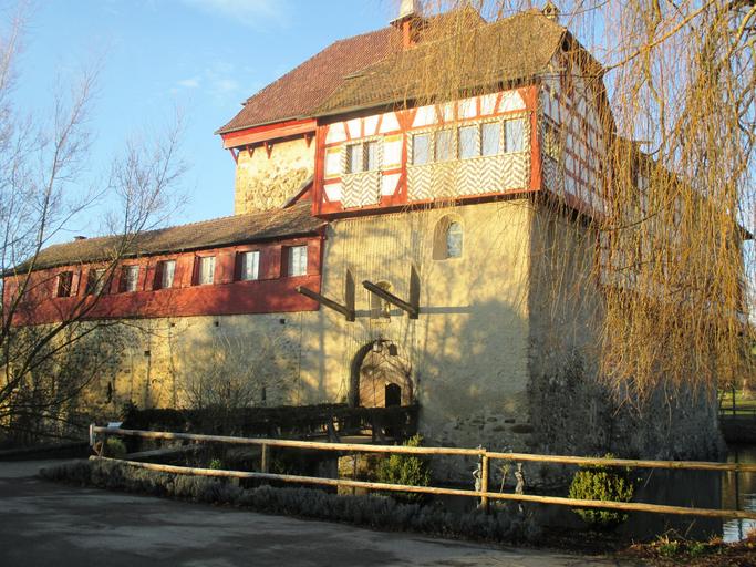 Keywords: moated castle hagenwil thurgau switzerland places of interest water gastronomy wedding parties boardwalk old bridge bolt construction