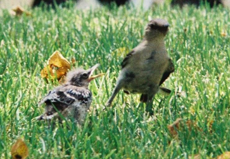 Keywords: Mockingbird Feeding Chick012.jpg Northern Mockingbird Feeding Her Chick Own 2007-07-12 Lsi john Mimus polyglottos juvenile Birds feeding young