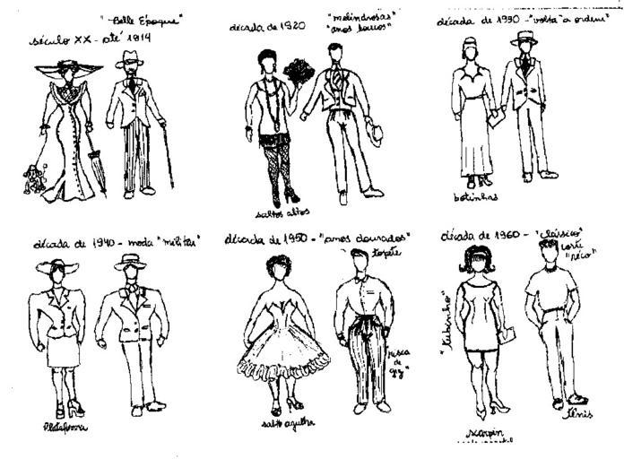 Keywords: Moda 2.jpg pt Desenho esquemático da evolução da moda do início do século XX até a década de 60 Diagram of the evolution of women's and men's clothing styles from the early 20th century to the late 1960s Own Luiz Carlos Cappellano 20th-century fashion Clothing diagrams |