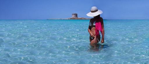 Keywords: model beauty woman female portrait water standing ocean hat tropical sexy glamour posing sea seascape shore coast fashion bikini
