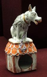 | Keywords: Model of a dog standing on its doghouse, c. 1730-1740, Du Paquier factory, hard-paste porcelain, overglaze enamels, gilding - Gardiner Museum, Toronto - DSC01004.JPG Exhibit in the Gardiner Museum Toronto Ontario Canada This artwork is in the public domain because the artist died more than 70 years ago Photography was permitted in the museum without restriction Daderot 2012-10-16 16 02 50 Daderot cc0 cc0 Du Paquier porcelain in the Gardiner Museum Animals on porcelain | ||||