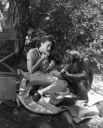 | Keywords: Molly Lamont, южно-африканская актриса наводит красоту с помощью шимпанзе Jiggs,на съемках 'The Jungle Princess', режиссера Wilhelm Thiele для Paramount. 1936.jpg  ru Molly Lamont южно-аф иканская акт иса наводит к асоту с помощью шимпанзе Jiggs на съемках 'The Jungle Princess'  ежиссе а Wilhelm Thiele для Paramount 1936 1936 Taken from http //foto-history livejournal com/2087726 html this site author Custom license marker 2014 03 11 PD-old-70 Pan troglodytes in captivity Uploaded with UploadWizard |