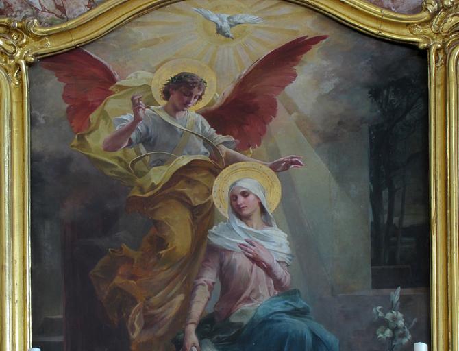 | Keywords: Mommenheim StMaurice 40.JPG Alsace Bas-Rhin Mommenheim Église Saint-Maurice Autel secondaire de la Vierge XVIIIe Tableau Annonciation M Feuerstein 1893 own 2013 Ralph Hammann cc-by-sa-3 0 Artwork / Œuvre d'art / Kunstwerk Artwork Creator Martin von Feuerstein 1893 oil canvas cm Eglise Saint-Maurice Mommenheim Autel secondaire nord PM67000546 PM67000545 IM67007164 object history other versions Ralph Hammann sur le tableau du Dieu le Père signature nom des donateurs date 1877 ; signature et dates 1893 sur l'Annonciation 1892 sur le saint François 1891 sur l'Adoration des bergers PD-old accession number Photographs of Mommenheim by Ralph Hammann Taken with Canon PowerShot SX20 IS Autels secondaires Église Saint-Maurice de Mommenheim Objets monuments historiques in Bas-Rhin church paintings 19th-century church paintings in Alsace 19th-century paintings of Annunciation Martin von Feuerstein 1893 works in Alsace 1893 oil on canvas paintings in France |