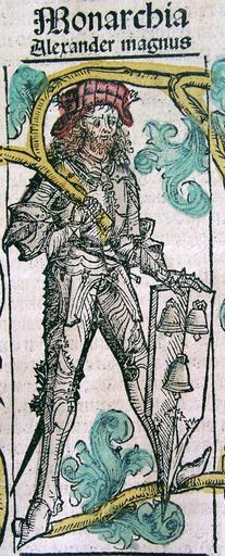 | Keywords: Monarchia Alexander Magnus Schedelsche Weltchronik LXXVv.jpg Alexander the Great as depicted in a woodcut from the Nuremberg Chronicle Schedelsche Weltchronik sheet LXXV verso http //www beloit edu/nuremberg/book/images/People/Classical/History/big/Alexander 20the 20Great jpg 1493 Probably Michael Wohlgemut Public domain PD-old-100 Engravings of Alexander the Great Kings in the Nuremberg Chronicle Michael Wolgemut | ||||