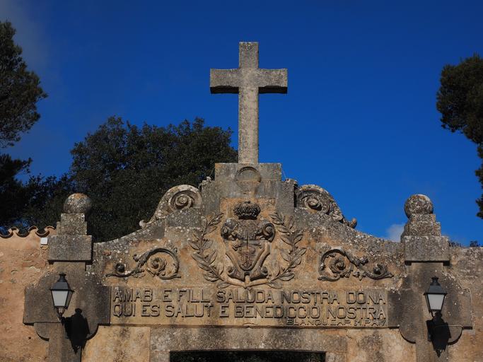 Keywords: monastery cura cross input cura algaida courtyard hof building architecture santuari de nostra senyora de cura monastery puig de randa balearic islands spain mallorca franciscan monastery place of pilgrimage