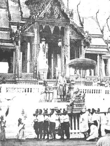 | Keywords: Mongkut and Chulalongkorn ceremony.jpg en Photograph showing the investiture ceremony of Prince Chulalongkorn on the palanquin his father King Mongkut is standing in the pavillion Grand Palace Bangkok Siam http //palungjit com/attachment php attachmentid 548531 d 1238053301 Creator John Thomson 1866 PD-Thailand Photos of Rama IV Ceremonies in Thailand Photos of Rama V Crowns of Thailand Photographs of Bangkok by John Thomson | ||||