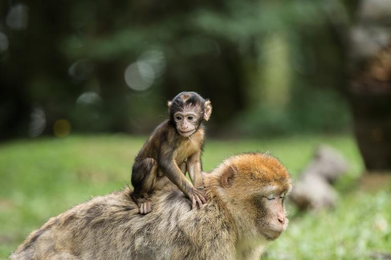 Keywords: monkey barbary ape mammal äffchen nature animal world animals zoo family young animal young animal portrait romantic monkey mountain salem