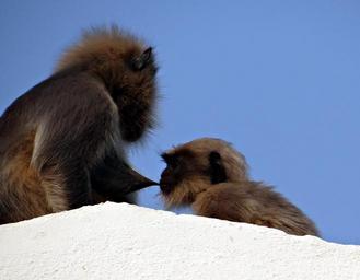 Keywords: monkey mom suckling baby langur hanuman langur semnopithecus entellus gray langur animal mammal sitting female dharwad india