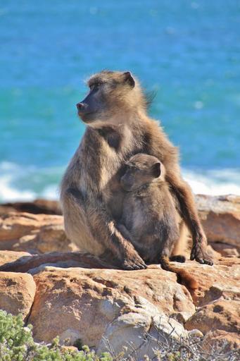 Keywords: monkey monkey family äffchen ape baboon animal nature animal world mammal free wild mother child monkey child monkey young sea ocean coast rock stones africa south africa animals protected travel young animal free photo