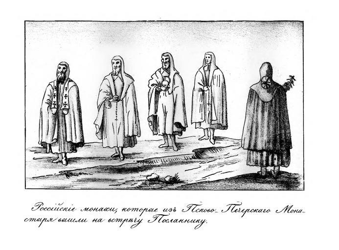 | Keywords: Monks of Pechory monastery.jpg  en This is picture from austrian diplomat Augustus Mayerberg book Traveling to Moscovia This picture was made in 1661 year ru Это иллюст ация из книги авст ийского посла Августа  айе бе га о его поездке в  осковию  а ка тине изоб ажены монахи Печо ского монасты я вст ечающие Авст ийского посланника http //runivers ru/lib/book4752/58857/ Augustus Mayerberg 1661 PD-old-100 1661 Orthodox monks Christian monks in art Russian Orthodox Church Paintings of priests Augustus Mayerberg Pskovo-Pechersky Monastery |