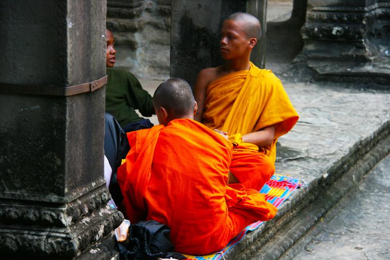 Keywords: monks thailand temple orange buddhism culture wat asia buddhist religion thai buddha spiritual faith travel people talking prayer young buddhists boys sitting eastern holy