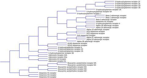 Keywords: Monoamine receptor tree.svg en A phylogenetic tree of vertebrate monoamine receptors Own Åkebråke 2009-05-12 Evolutionary biology Monoamines