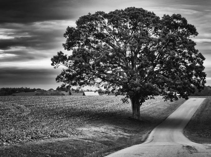 Keywords: monochrome black and white scenery landscape classic country rural scenic farm sky tree field grass farmland countryside agriculture road crop cultivated plantation farmer farming