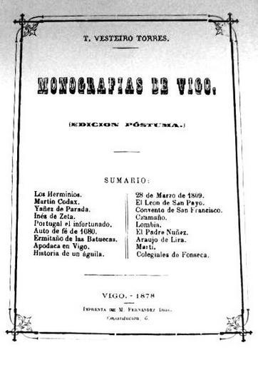 Keywords: Monografías de Vigo.jpg Monografías de Vigo Imprenta M Fernández Dios 1878 Teodosio Vesteiro Torres PD-old-100 Teodosio Vesteiro Torres Books from Galicia Spain 1878 book covers