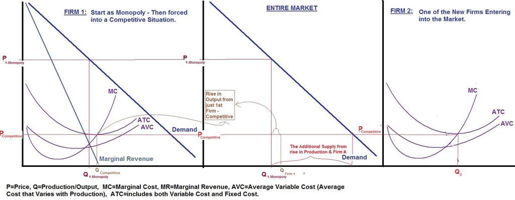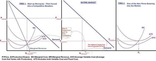Keywords: MonopolyToCompetitive-Transformation-Wiki.jpg en If a Firm may have a Monopoly no Competition in an industry it can control the Supply for the entire Industry in order to ensure a high Price and a Maximum Monopoly Profit However when Competition in the form of other Firms enters into the Market the Competition for Customers forces all firms to both lower the Price they ask for the Product They don't produce beyond the point the Market Price pays for the Cost of the last unit they produce own Mgmwki This is considered General Knowledge amongst all Economists - In Economics Classes in College You can Find this in various forms in any Micro Economics Text Book Journal Article From Various Micro Economics Classes - General Knowledge in Economics show in every beginning level Micro Class You may Find various representations of the same thing in various Micro Economics Books This includes both Graduate Level and Undergraduate Level books as well as some very popular books like the 'Economics for Dummies' book s See Example in Bradley R chiller Essentials of Economics New York McGraw-Hill Inc 1991 Micro Economics Uncategorized 2015 January 10 |