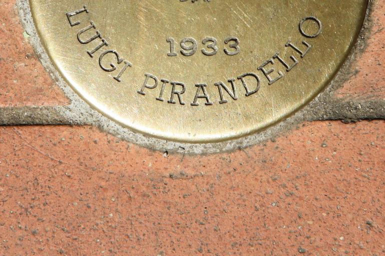 | Keywords: Montecatini Terme Viale Verdi Luigi Pirandello plaque 01.JPG en ITA Tuscany Montecatini Terme Viale Verdi The circular brass plate placed along Viale Verdi to remember the celebrities who stayed in town The commemorative inscription reports the celebrity ™s name and the year of the first coming Here is the plate concerning Luigi Pirandello own Piergiuliano Chesi 2013-06-14 Walks of Fame Montecatini Terme | ||||