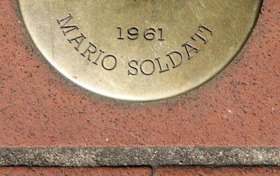 | Keywords: Montecatini Terme Viale Verdi Mario Soldati plaque 01.JPG en ITA Tuscany Montecatini Terme Viale Verdi The circular brass plate placed along Viale Verdi to remember the celebrities who stayed in town The commemorative inscription reports the celebrity ™s name and the year of the first coming Here is the plate concerning Mario Soldati own Piergiuliano Chesi 2013-06-14 Walks of Fame Montecatini Terme | ||||