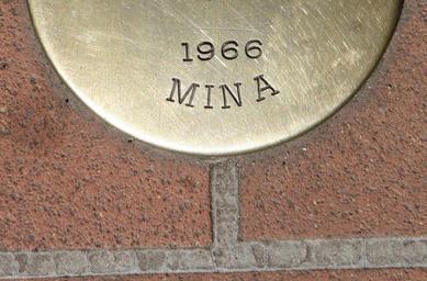 | Keywords: Montecatini Terme Viale Verdi Mina plaque 01.JPG en ITA Tuscany Montecatini Terme Viale Verdi The circular brass plate placed along Viale Verdi to remember the celebrities who stayed in town The commemorative inscription reports the celebrity ™s name and the year of the first coming Here is the plate concerning Mina singer Mina own Piergiuliano Chesi 2013-06-14 Walks of Fame Montecatini Terme | ||||